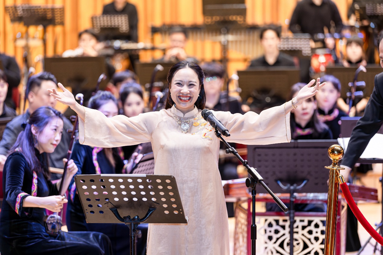 我校校友、越南著名歌唱家陈氏碧玉与乐团合作演绎《越南—中国》
