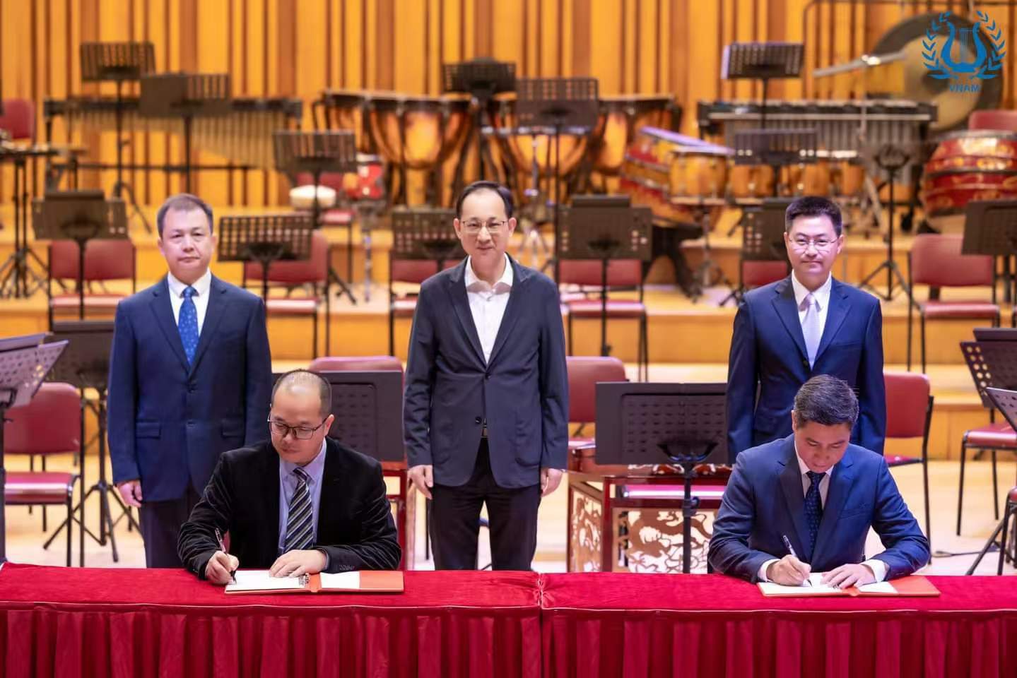 晚会前,在中国驻越南大使馆公使王群,自治区文化和旅游厅党组书记韩流,自治区教育厅党组副书记、副厅长闫炳辰的共同见证下,我校与河内中国文化中心签订战略合作协议,双方计划联合举办中越艺术联合展演、艺术青年艺术家友好交流等一系列交流活动,增进两国人民特别是青年一代的相互了解。与会的中越方领导为联合创作交响乐《友谊长青》的中越作曲家颁发聘书。
