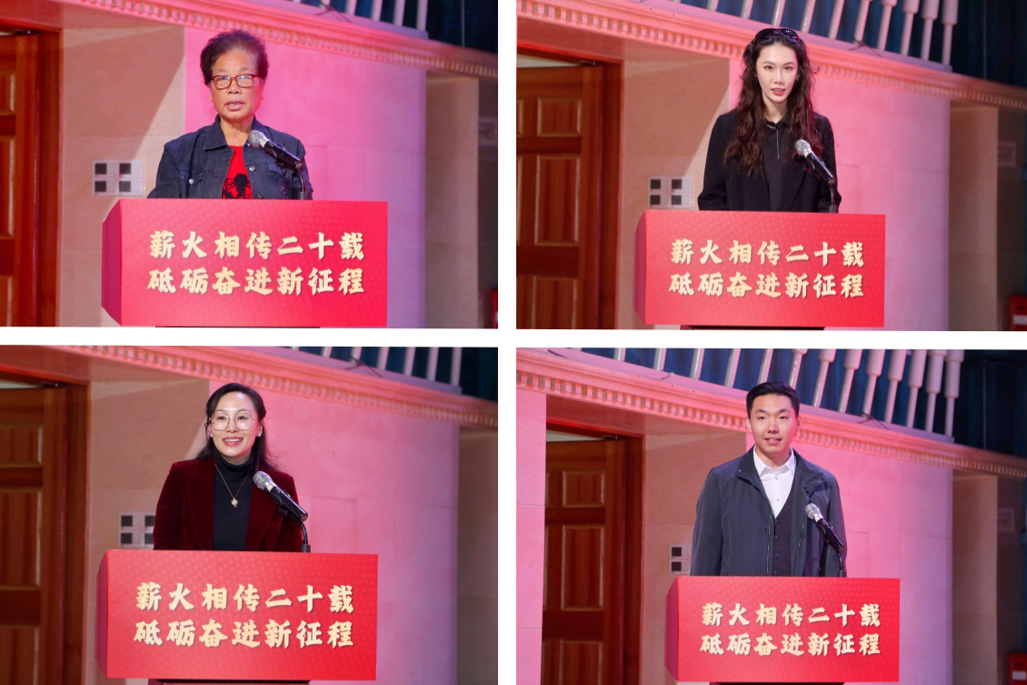 人文学院党委副书记、院长黄露介绍了人文学院建院20年以来的发展情况,并表示人文学院将以此为发展契机和新起点,紧紧围绕立德树人根本任务,做好艺术学学科建设,为学校中心工作贡献强有力的科研力量。老教师代表、人文学院主要创办人郑学凤在发言中回顾了人文学院发展历程,真情讲述了人文学院建院前的过往记忆,深情回望老一辈人文教师开拓进取的拼搏故事,欣慰感怀人文学院二十年来取得的成就。人文学院校友代表、师生代表分别发言,表达了对人文学院的祝贺与祝福。