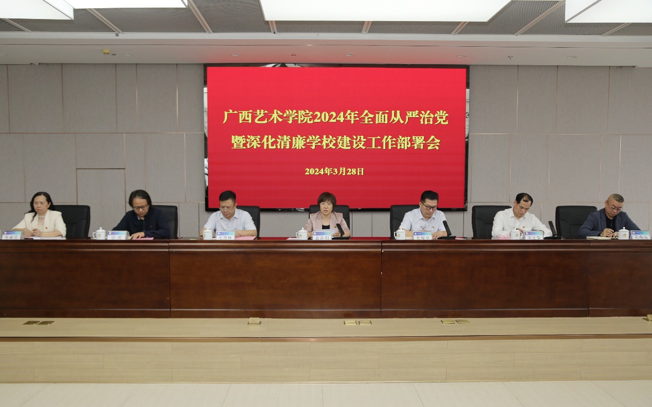 3月28日下午,我校在南湖校区漓江画派艺术中心1801报告厅召开2024年全面从严治党暨深化清廉学校建设工作部署会、干部警示教育大会,学校领导查丹明、韦俊平、毛茂林、韦文帝、伏虎、石向东、韦春灵出席大会,学校全体中层领导干部参加会议,会议由学校党委副书记、校长韦俊平主持。