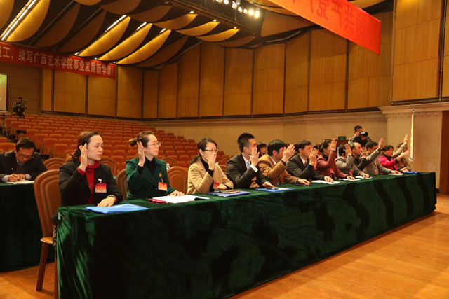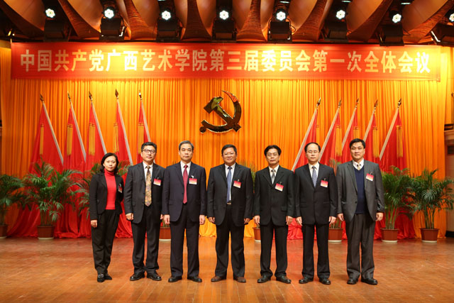 12月31日上午12:00,学校第三次党员代表大会顺利结束之后,新当选的“两委”委员召开了第一次全体会议。大会由主持人邓军同志召开。会议选举邓军同志为党委书记,赵焕春同志、李沛新同志为党委副书记,选举邓军、赵焕春、李沛新、陈应鑫、韦俊平、侯道辉、韦春灵7名同志为中共广西艺术学院第三届委员会常委。