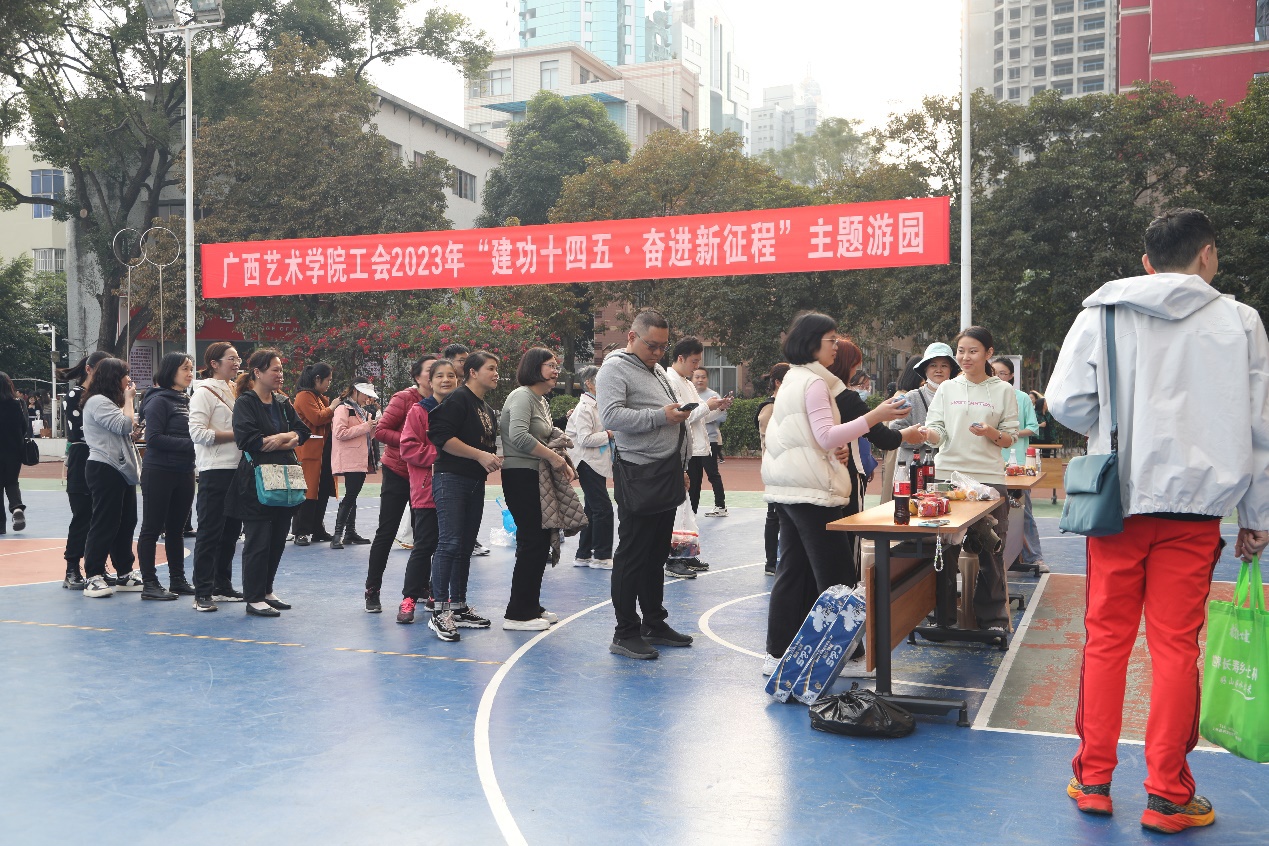 为丰富校园文化生活,增进教职工之间的友谊,进一步促进我校教职工身心健康发展,12月29日下午,我校工会在南湖校区篮球场举办广西艺术学院“建功十四五·奋进新征程”主题游园活动。学校总会计师韦春灵与广大教师一起参加游园活动,共有500多名教职工一同参与游园活动,整个游园活动内容精彩纷呈,场面热闹非凡。